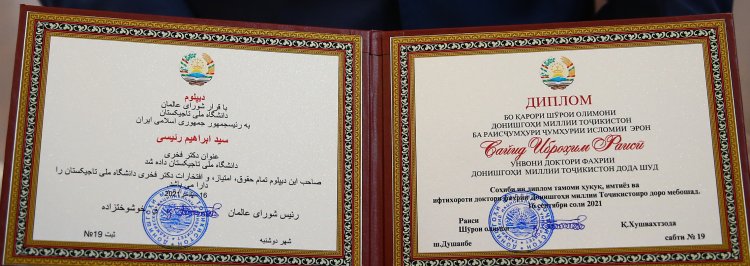اعطای مدرک دکترای افتخاری به رئیس جمهور و سخنرانی در دانشگاه ملی تاجیکستان
