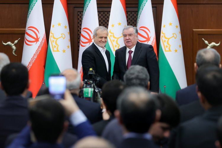 نشست مطبوعاتی مشترک دکتر مسعود پزشکیان رئیس جمهوری اسلامی ایران با امامعلی رحمان رئیس جمهور تاجیکستان در قصر ملت تاجیکستان،برگزارشد.
