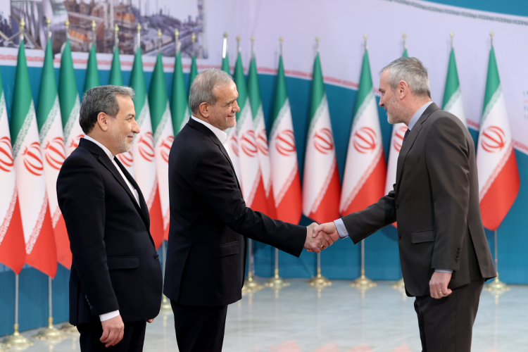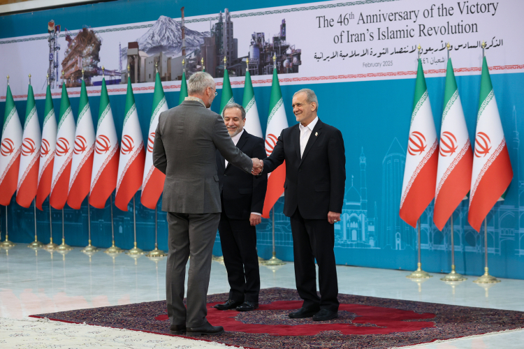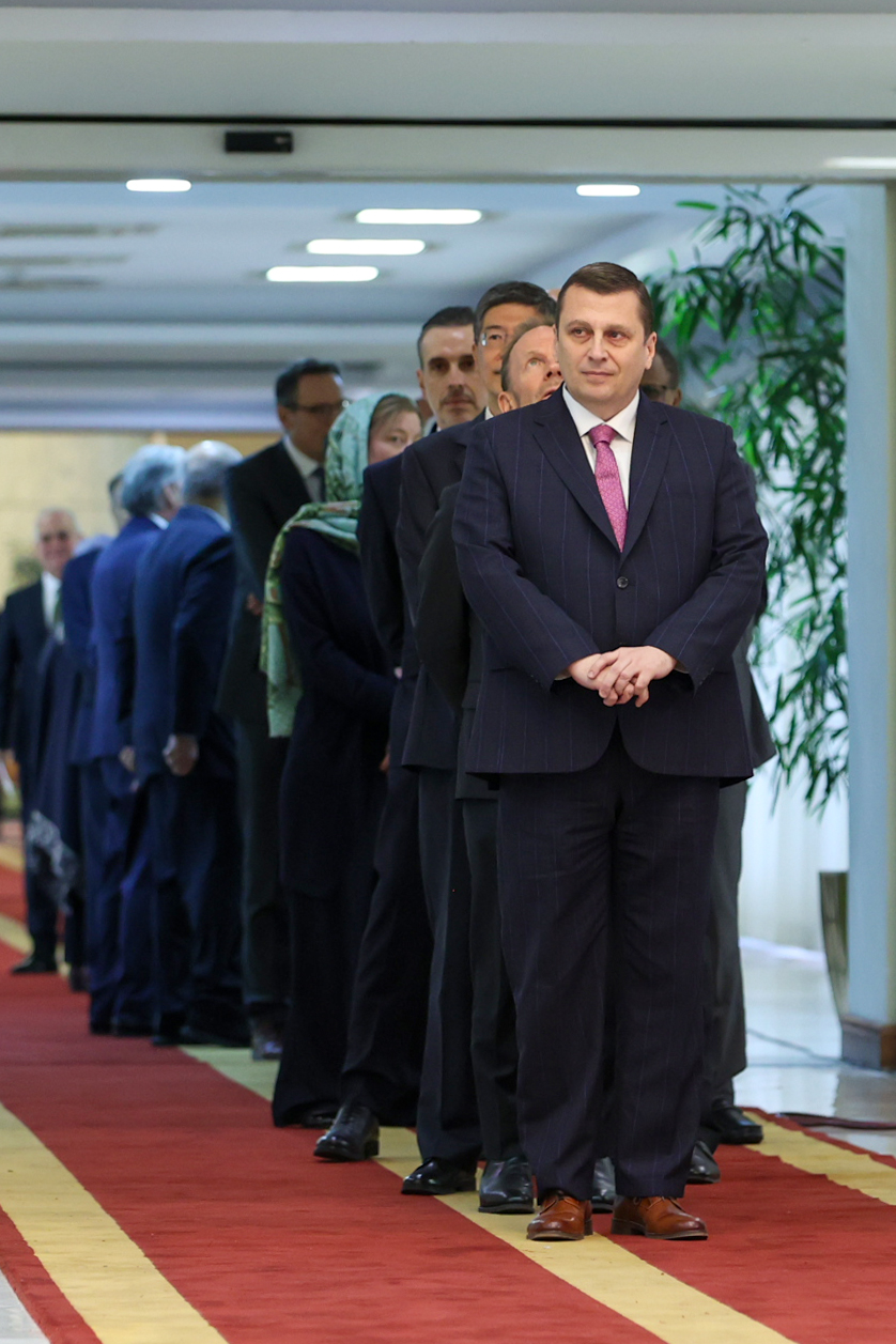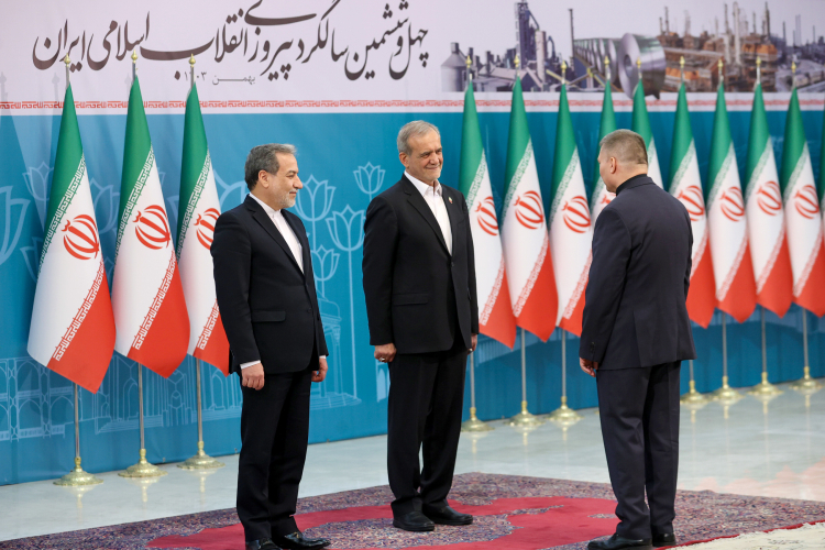 آئین سلام و تبریک سفرا و روسای نمایندگیهای بین المللی در کشورمان به دکتر پزشکیان به مناسبت فرارسیدن چهل و ششمین سالروز پیروزی انقلاب اسلامی عصر امروز پنجشنبه در سالن اجلاس سران برگزار شد.