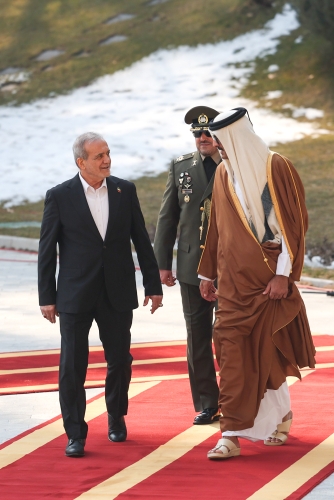 دکتر مسعود پزشکیان بعد از ظهر امروز چهارشنبه به طور رسمی از شیخ تمیم بن حمد آل ثانی امیر قطر در مجموعه فرهنگی، تاریخی سعدآباد استقبال کرد.