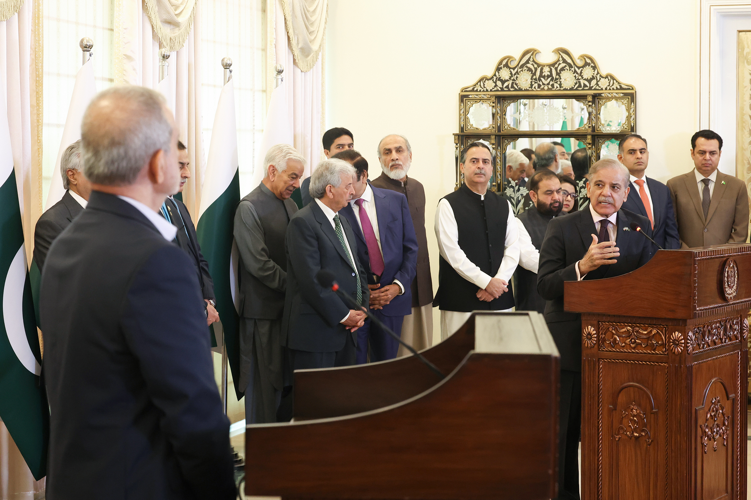 نشست مشترک هیئتهای عالیرتبه جمهوری اسلامی ایران و جمهوری اسلامی پاکستان، به ریاست دکتر مسعود پزشکیان رئیس جمهور کشورمان و آقای شهباز شریف نخست وزیر پاکستان، ظهر امروز یکشنبه، در محل کاخ نخست وزیری اسلامآباد برگزار شد.