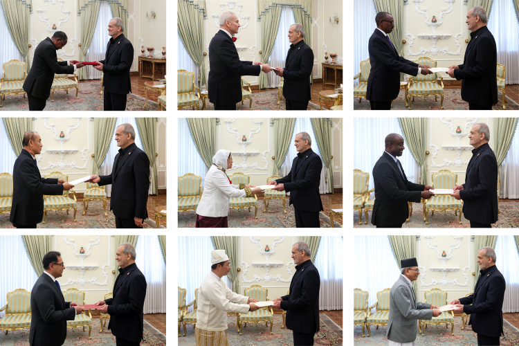 سفرای کشورهای اتیوپی، استونی، جیبوتی، لائوس، کامبوج، بروندی، لتونی، میانمار و نپال پیش از ظهر امروز یکشنبه با حضور در نهاد ریاست جمهوری استوارنامه های خود را تسلیم دکتر مسعود پزشکیان رئیسجمهوری اسلامی ایران کردند.