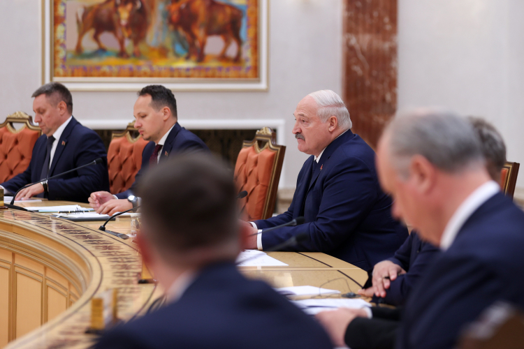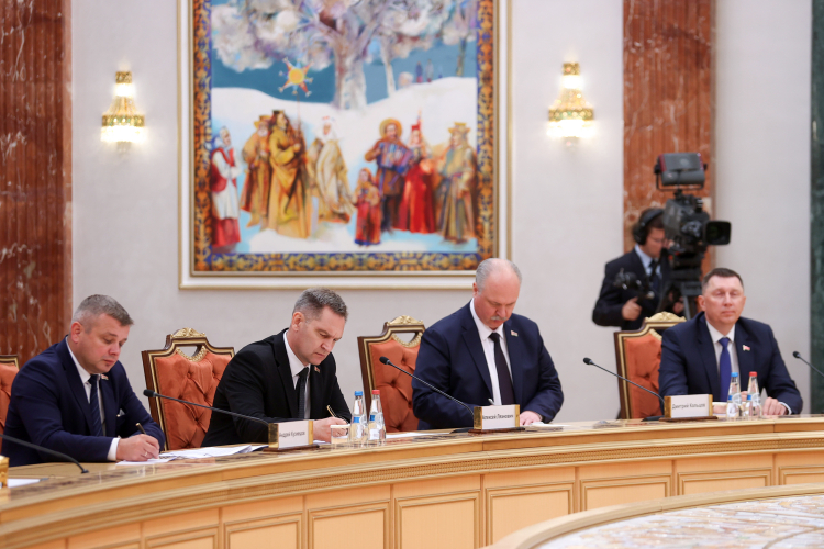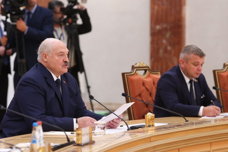 نشست مشترک هیئت های عالیرتبه ایران و بلاروس صبح امروز چهارشنبه پس از برگزاری مراسم استقبال رسمی در محل کاخ ریاست جمهوری بلاروس ،به ریاست روسای جمهور دو کشور برگزار شد.