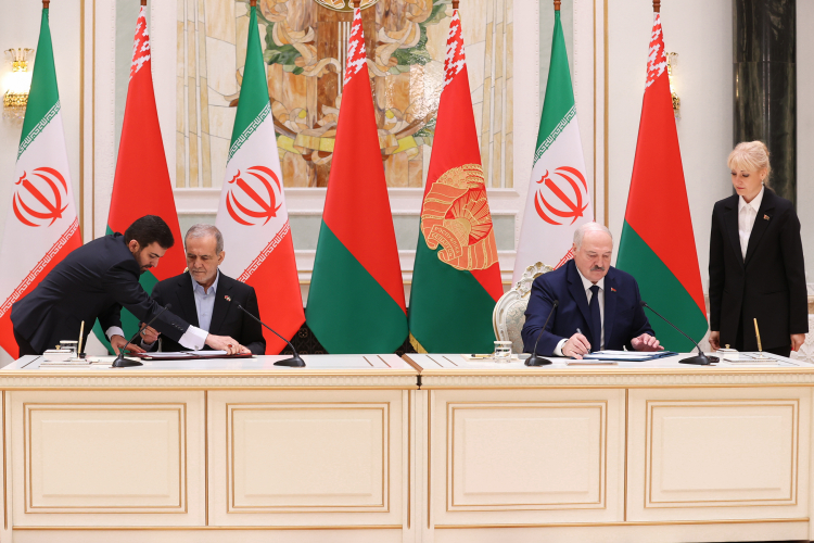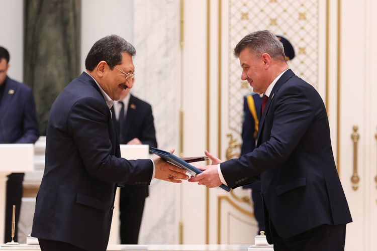 در جریان سفر دکتر مسعود پزشکیان به بلاروس، ظهر امروز چهارشنبه، مقامات عالیرتبه ایران و بلاروس، در حضور روسای جمهور 2 کشور، 12 سند همکاری در حوزههای سیاسی، حقوق بینالملل، گردشگری، هنری، رسانهای، بهداشت و سلامت، دارویی، صنعتی، محیط زیست، مناطق آزاد، صنعتی و ویژه اقتصادی و سرمایهگذاری به امضا رساندند.همچنین روسای جمهور ایران و بلاروس نیز در این مراسم، بیانیه مشترک سفر را امضا کردند.