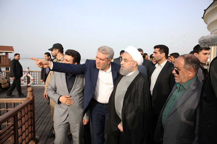 بازدید رییس جمهوری از طرح اصلاح و بهسازی نوار ساحلی غرب جزیره کیش و هتل ترنج